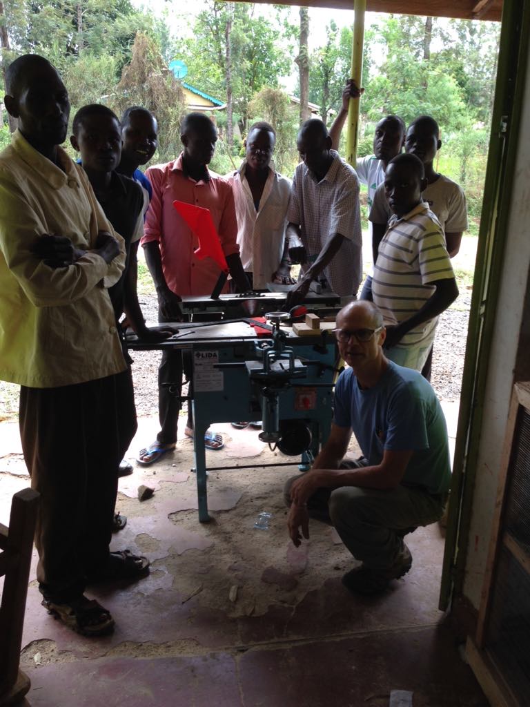 One thing we were able to do, with the help of two generous donors, was to purchase a woodworking machine. This machine is four tools in one, and features a table saw, jointer, planer, and mortise machine. It should help the program in two ways: they no longer need to travel to a neighboring shop and pay them to plane their timber, and in the future, they plan to machine timber for customers and make a few shillings for the program.