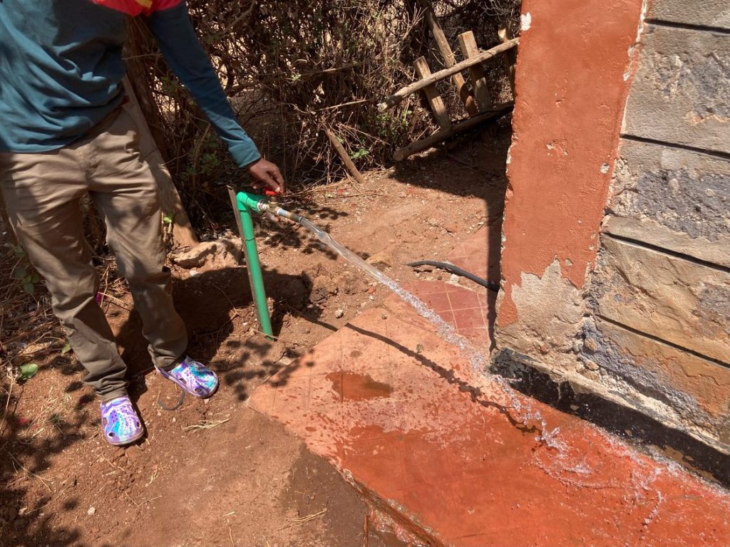 This area of Kenya has been experiencing drought. I am told it has been a year since they have had any rain. Every river/waterway we crossed was completely dry. We had provided funds for a well borehole and this trip allowed us to see the success of another water project. It is so dry there that seeing water come from the parched earth seemed miraculous.